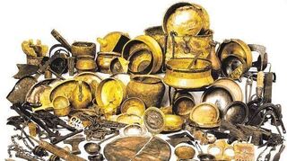 Ein Bagger kippt in eine Kiesgrube. Bei seiner Bergung werden Pfannen, Schwerter, Wagenräder gefunden - Spuren eines Raubzuges. Ein wertvoller Schatz aus dem Altertum.