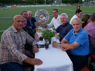 Weggefährten der vergangenen Jahrzehnte: Hinten links hält der frühere langjährige VfR-Präsident Egon Scheuermann das Replikat der Meisterschale.