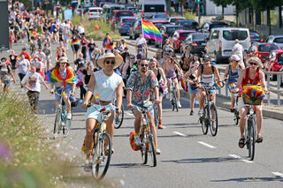 Radelnde CSD-Teilnehmer 2021 in Mannheim.