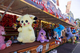 Hier warten Plüschtiere auf Gewinner.