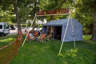 Der JUZ Garten ist ein Angebot für Jugendliche beim Ketscher Backfischfest. Er bietet einen Treffpunkt und ist Anlaufstelle für jüngere Besucher.
