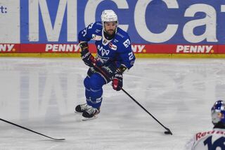 Mannheims Kris Bennett (Nr.21) am Puck beim Spiel in der Penny DEL, Adler Mannheim - EHC Red Bull Muenchen.