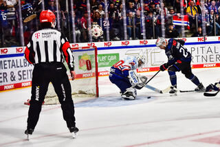 ...traf Daniel Schmölz 54 Sekunden vor Spielende zum 3:1 für die Ice Tigers ins leere Tor.