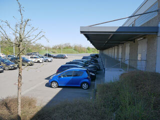 Die alten Laderampen in Richtung Wohngebiet an der Karlsuher Straße (l.) werden seit dem letzten Umbau 2003 aus Lärmschutzgründen nicht mehr genutzt und dienen als Parkplatz für die Mitarbeiter.