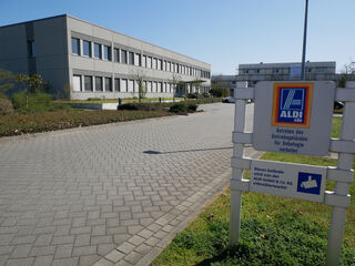 Die Einfahrt zum Logistikzentrum der Regionalgesellschaft von Aldi Süd im Heuweg. In etwas über einem Jahr wird hier der Betrieb endgültig eingestellt.