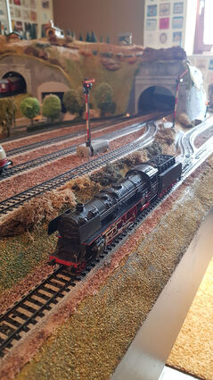 Die Märklin-Lok von 1955 wird auf der Anlage nicht mehr gefahren - sie ist noch massiv, aus Metall und nicht aus Kunststoff.