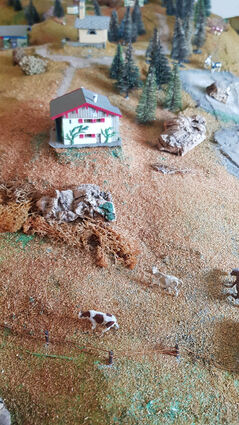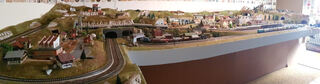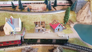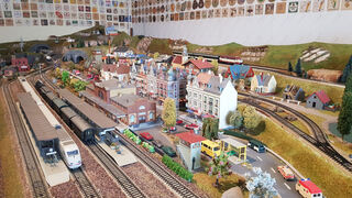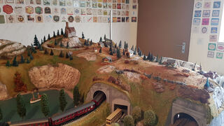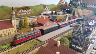Auf etwa acht Quadratmetern fahren die Modellbahnen über die Gleise und durch die Landschaft, die der Modellbahn-Fan gebaut hat.