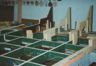 Die Anlage ist im Entstehen. Hölzer werden zugeschnitten und die Kabel für den Stormkreislauf gelegt.
