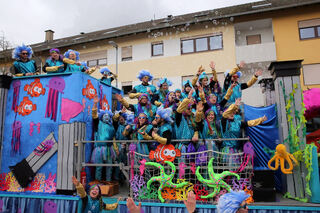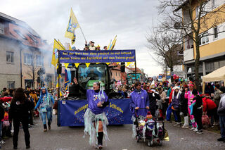 Einmal mehr einen imposanten Wagen präsentieren die Reilinger Kraichbachschlabbe. Sie feiern Karneval auf dem Meeresgrund.