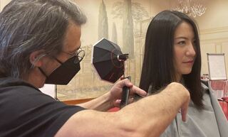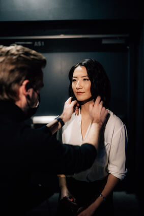 Der letzte Check: Kurz vor dem Start der Veranstaltung ist das Styling-Team noch mal bei Weihua Wang.