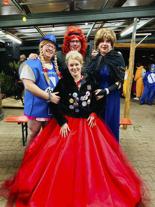 Sanja I. beim Prinzessinenempfang mit Uwe Lorenz (v. l.), Gregor Ries alias Lolo und Dirk Berger alias Senta. Sie ist die Corona-Prinzessin und ließ sämtliche Kleider bei ihrer Tante in Serbien fertigen.