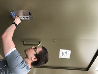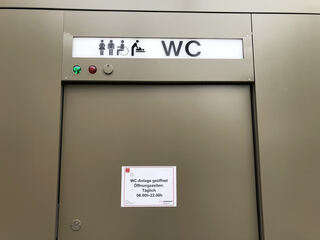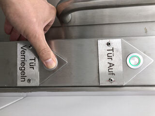 Per Knopfdruck lässt sich die Tür von innen verriegeln, wenn sich das WC nicht gerade im Notmodus befindet.