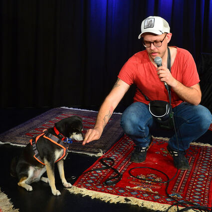 ... hat für seinen Auftritt einen besonderen Gast dabei: Hündin Frieda.