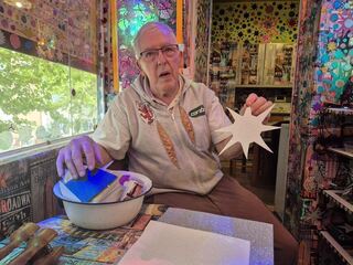 Hier erläutert der Hobbykünstler einige seiner Werke.