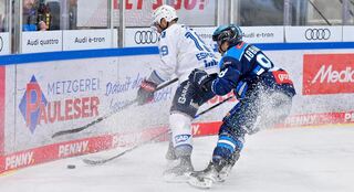 Zach Solow (Nr.73 Adler Mannheim) und Leon Hüttl (Nr.25 ERC Ingolstadt).