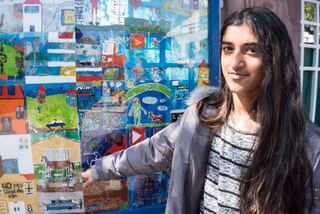 Ann-Katrin von der Schimper-Gemeinschaftsschule zeigt auf ihr Bild in der Collage.