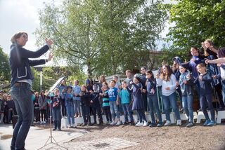 Der Schulchor der Zeyher-Grundschule eröffnet unter der Leitung von Astrid Radovanovic die Ausstellung musikalisch.