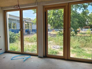 Blick aus einem Gruppenraum in Richtung Außengelände.