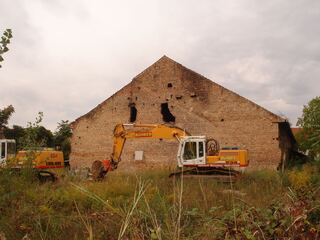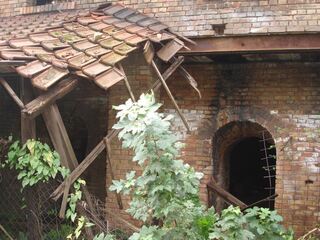 Das Merkel-Gebäude mit dem Zick-Zack-Ofen im Erdgeschoss und dem Trockenboden darüber wurde im Herbst 2012 abgerissen.
