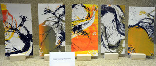 Sigrid Kiessling-Rossmann, links: Klangbild I, Holzschnitt-Unikat; rechts: Klangbild II, Holzschnitt-Unikat.