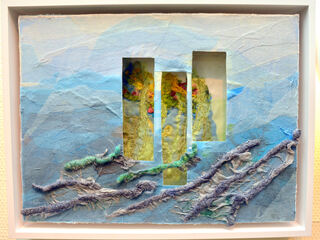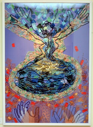 Ingrid Eckert, Wasserfluten I Applikation, Assemblage mit Seidenorganza-Applikation.