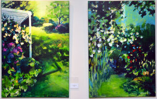 Liliana Geiss, links: An einem Nachmittag im Mai, Acryl auf Leinwand; rechts: Du gibst mir den Schatten, den ich suche.