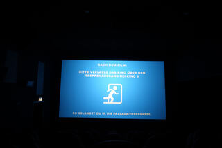 Doch dann finden sich Hinweise, dass etwas anders ist: Auch im Kino gelten die Abstandsregeln.