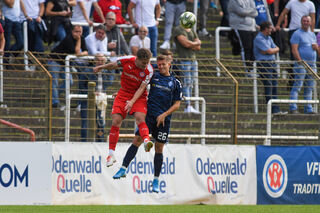 Jan-Hendrik Marx (re.) im Kopfballduell mit Yannick Haag.