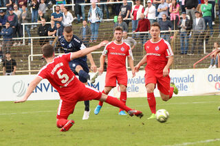 Rene Schwall (re.) mit vollem Einsatz gegen Kevin Koffi.