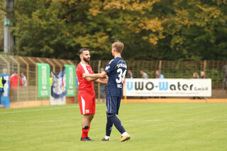 SVW-U23-Spieler Patrick Hocker (re.) und Ayhan Sabah geben sich nach dem Spiel die Hand.