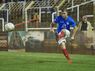 Norbert Kirschner (vorne) versucht per Grätsche, an den Schussversuch von Gianluca Korte zu kommen.