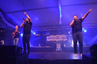 Die "who2ladies" sind ein Publikumsmagnet: Gitarrist Patrick Weiser, Martin Weissmann, der als Sänger zusammen mit Frontmann Tobias Kief.
