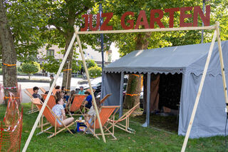 Der "JUZ Garten" ist ein Angeot für Jugendliche beim Ketscher Backfischfest. Er biete einen Treffpunkt und Anlaufstelle für jüngere Besucher.