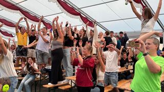 Das Publikum im Ketscher Festzelt lässt sich am Dienstagabend von Neon mitreißen.