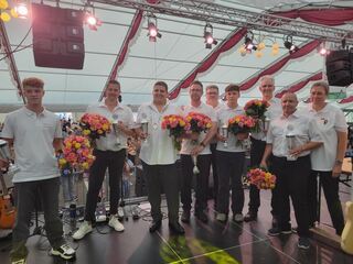 Zahlreiche Glückwünsche und Präsente überreichen die befreundeten Angelvereine an den Fischerkönig und die Jugendprinzen am ersten Sonntag auf dem Ketscher Backfischfest