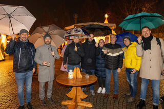 Auch Regen kann diese Gruppe aus Schwetzingen nicht abhalten, den Kurfürstlichen Weihnachtsmarkt in Schwetzingen zu besuchen.