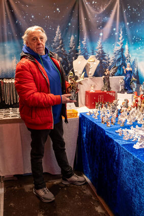Figuren, Mützen, Schals und Stahlschmuck: Das alles gibt es am Stand von "Schwab" zu kaufen.
