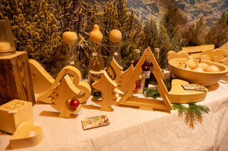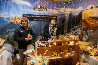 Alle Produkte am Stand des Holzwerks Alpenstihl sind selbst hergestellt und aus Zirbenholz.
