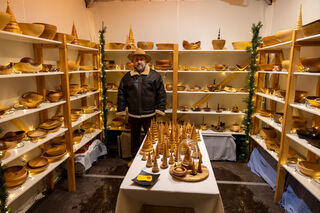 Angeboten werden Schalen und Schüsseln, Schmuckdosen sowie Weihnachtsbäume.