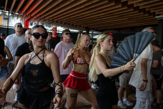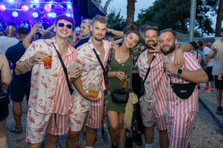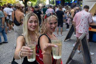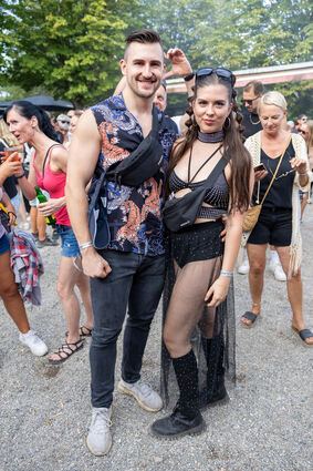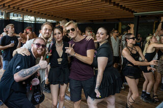 Diese Partypeople sind eine Abordnung von einem der Sponsoren des Festivals, der Pfitzenmeier Gruppe.