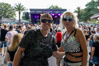 Kerstin (links) und Christina aus Mannheim geniesen die tolle Technomusik auf dem Festival.