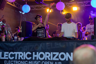 Felic Kröcher am Mischpult bei der ersten Ausgabe vom Electric Horizon Festival in Plankstadt.