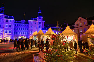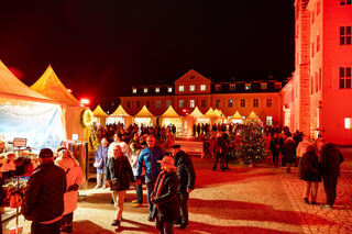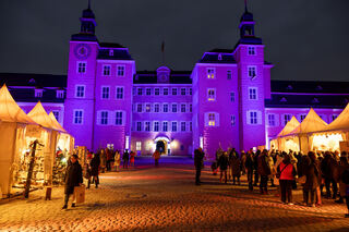 Der Schlossplatz ist stimmungsvoll erleuchtet.