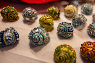 Am Stand von Sigmund gibt toll verzierte Schneckenhäuser zu kaufen. Die Schneckenhäuschen wurden selbst im Wald gesammelt.