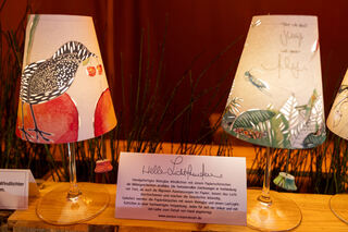 Am Stand der hellen Lichtfreunde gibt es schöne Weinglas-Windlichter mit Papierschirmchen zu kaufen.