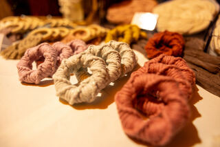 Der Stand von "Schmuckatrium" bietet selbst hergestellten Schmuck an.
