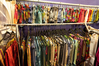 Blick in den Stand von "Müller", hier gibt es Patchwork und kreatives aus Stoff zu kaufen.