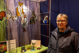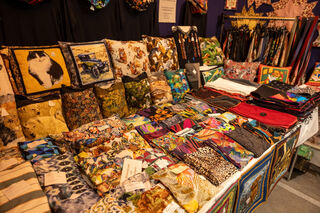 Am Stand von Martina Forster "Glasbunt" gibt es Tücher, Stulpen, Etageren zu kaufen.