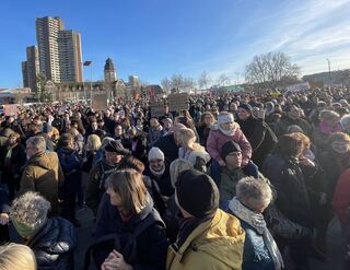 15.000 bis 20.000 Menschen folgen dem Aufruf zu der Kundgebung.