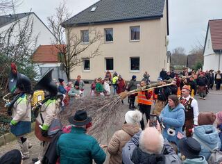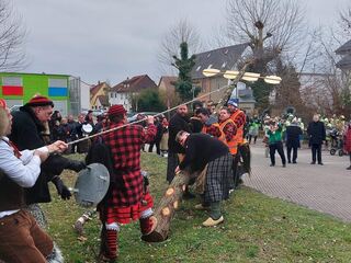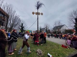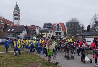 Einen ersten kleinen Umzug gab es im Ketsch rund um das Stellen des Narrenbaums zum Auftakt des Narrensprungs am Samstag.